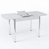 Раскладной кухонный стол со стеклом Стол Чикаго СТ МП 1100(1400)*680*750 Ноги прямые 02 гальваника (стекло Белое глянцевое цвет ВН) - практичный и современный предмет мебели, который благодаря большому количеству модификаций подойдет к любому интерьеру и будет долго служить вашей семье.